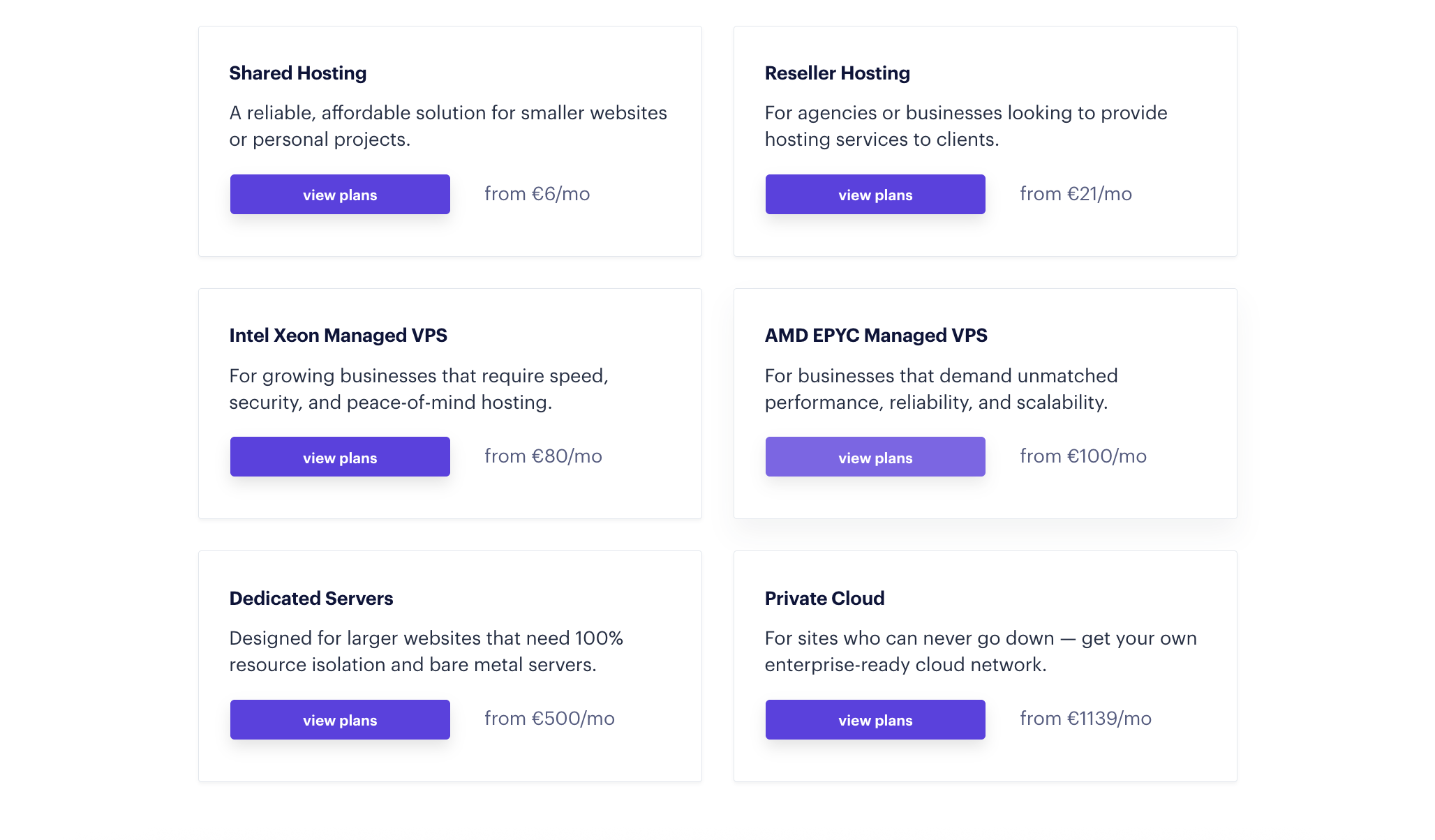 You get various types of Hosting plans from EuroVPS. These include-