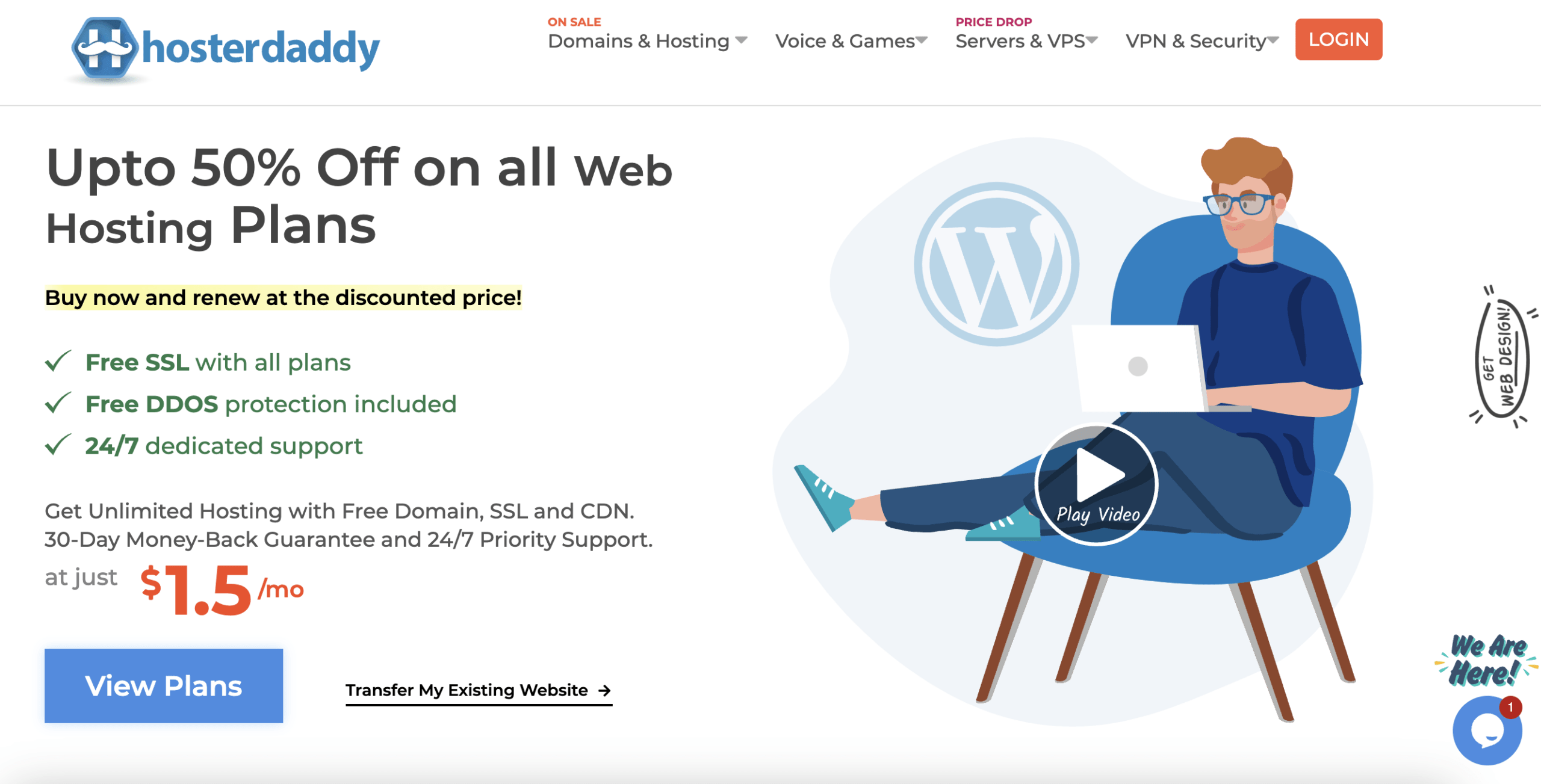 HosterDaddy never compromises the customer’s security. Thus, it furnishes you with a free SSL certificate with all the plans it offers and anti-DDoS protection to protect your website from hacking. It comes with an accessible backup facility to quickly restore your data and free malware detection and removal to prevent any fraud.