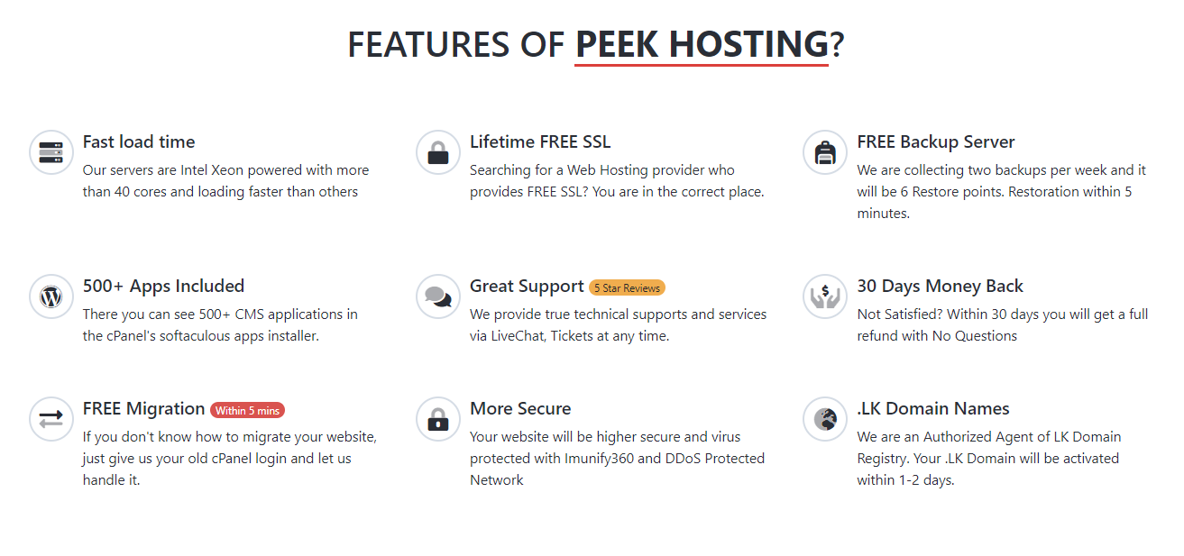 PeekHosting has some Core Features, which are as follows-