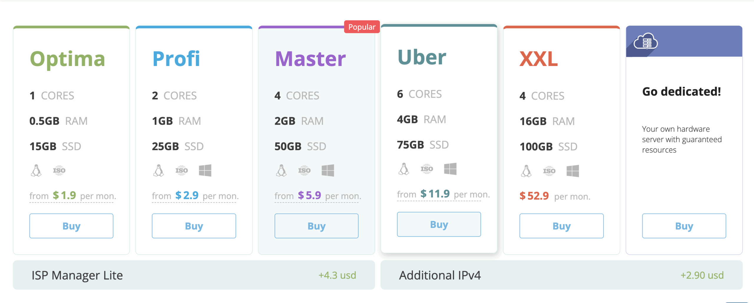 You can also choose from various Operating Systems for Dedicated Servers, and you can upload your own ISO as well.