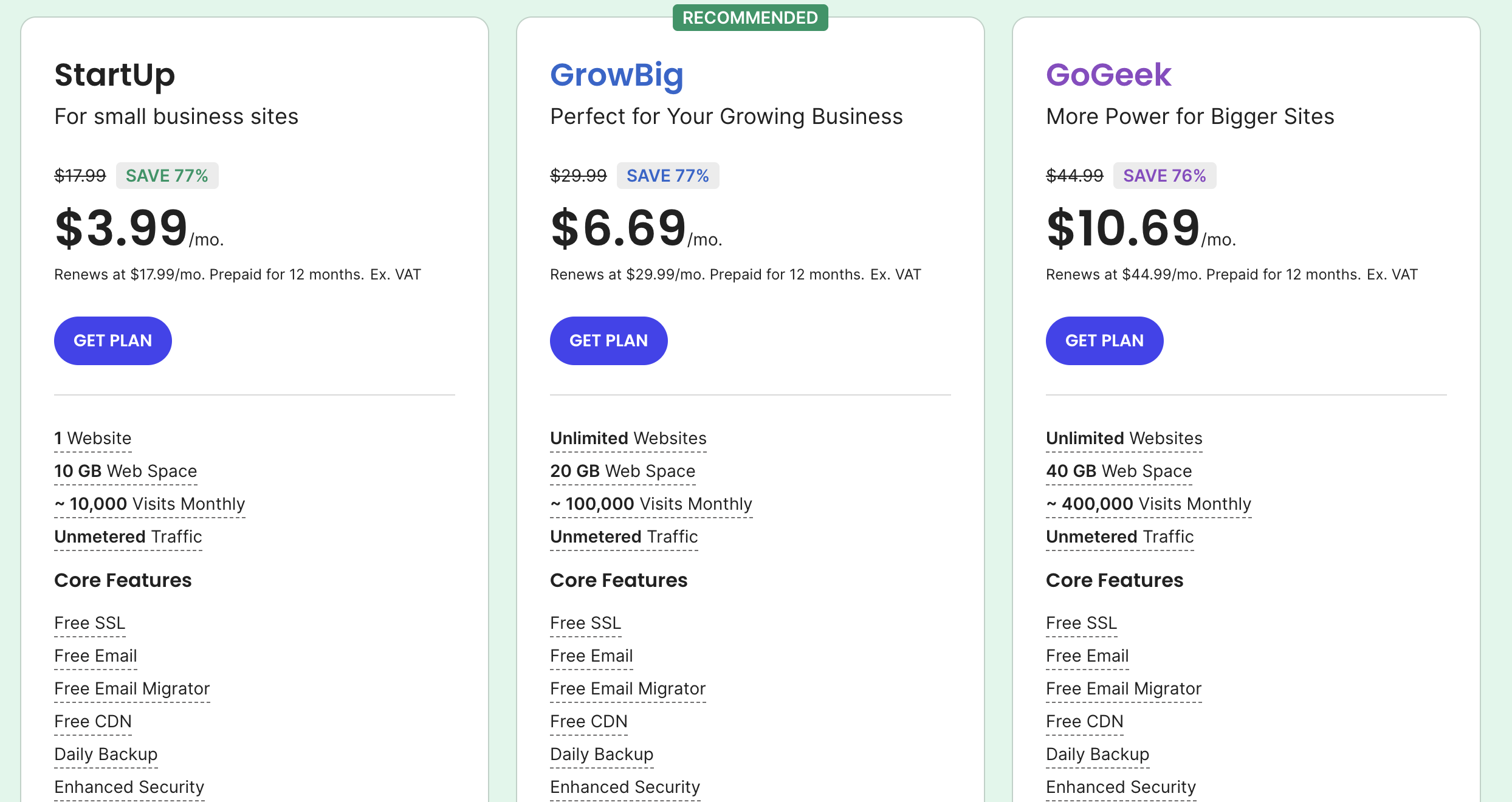 SiteGround offers the following hosting plans: