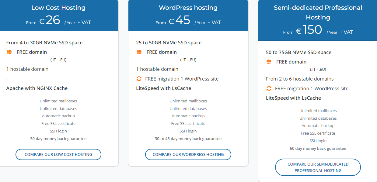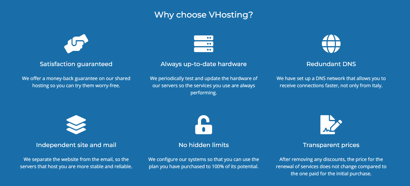 Vhosting has two data centres in Italy and Germany, which is an excellent advantage for those in Europe.