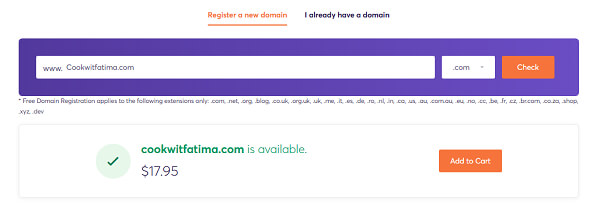 - On Choosing the appropriate web hosting plan >> Register a new domain >> Click the Check option to find out the availability of the Domain name >> If available, Press the Add to Cart option >> Click the Added button to proceed further.