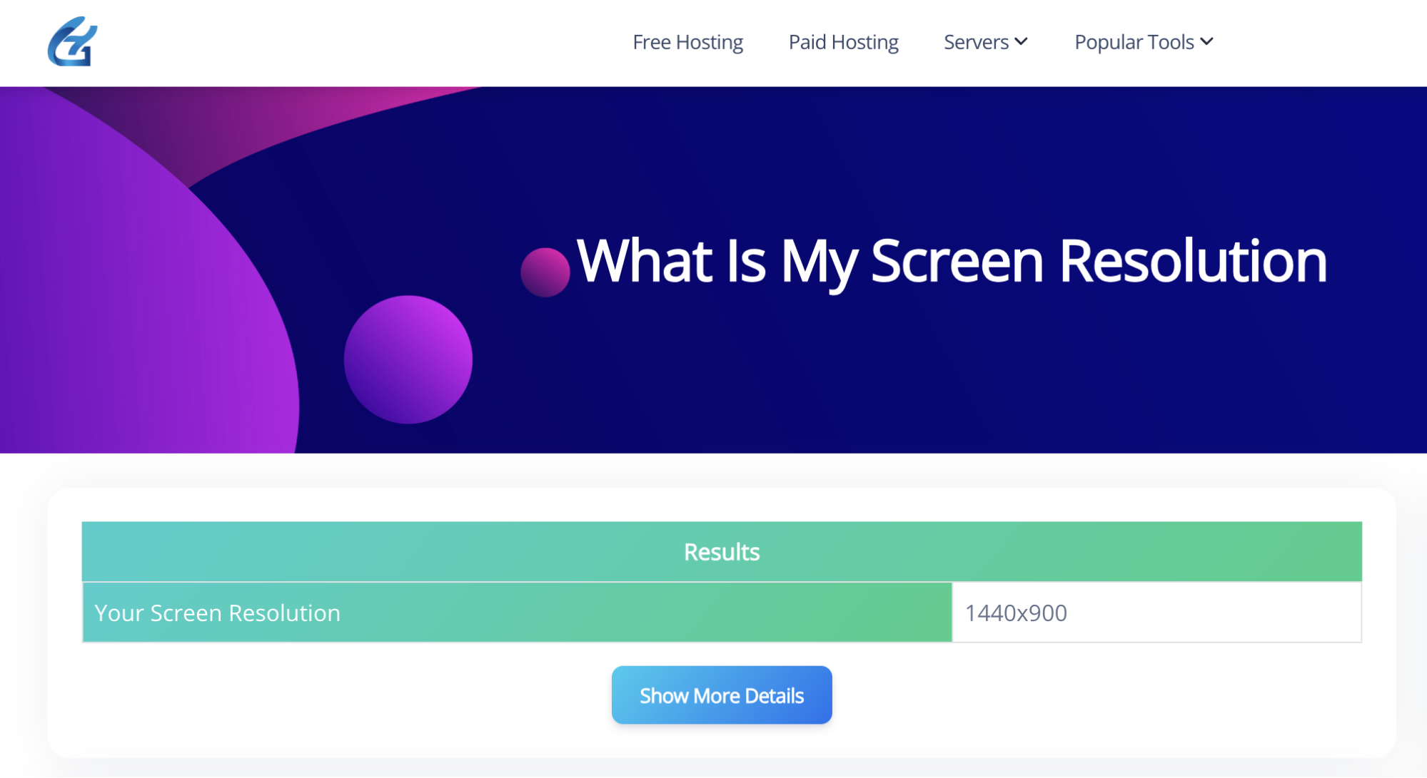 Schritt 1. Navigieren Sie zum Tool: Besuchen Sie die Seite „Was ist meine Bildschirmauflösung“ auf Googiehost. Dort finden Sie einen Titel („Was ist meine Bildschirmauflösung“) und einen Abschnitt mit der Überschrift Ergebnisse wo Ihre Bildschirmauflösung angezeigt wird.