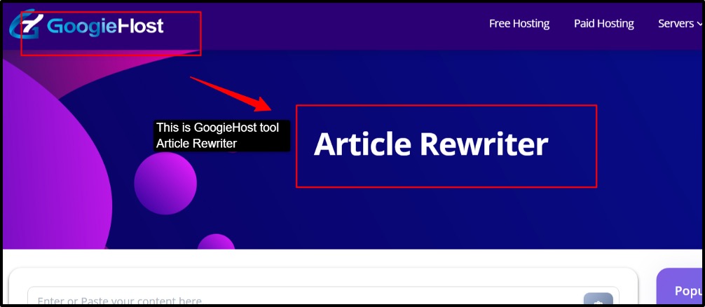 Step 1: Visit the official website of GoogieHost's Article Rewriter page from your browser. Here, you will find a large input box where you can paste your content.