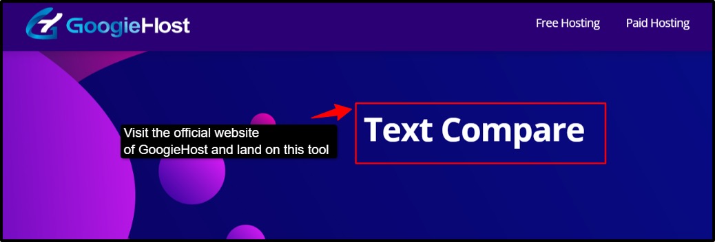 Step 1. Start by opening your web browser and visiting the GoogieHost official website, then navigate to the “Text to Compare” tool from their free tools section.