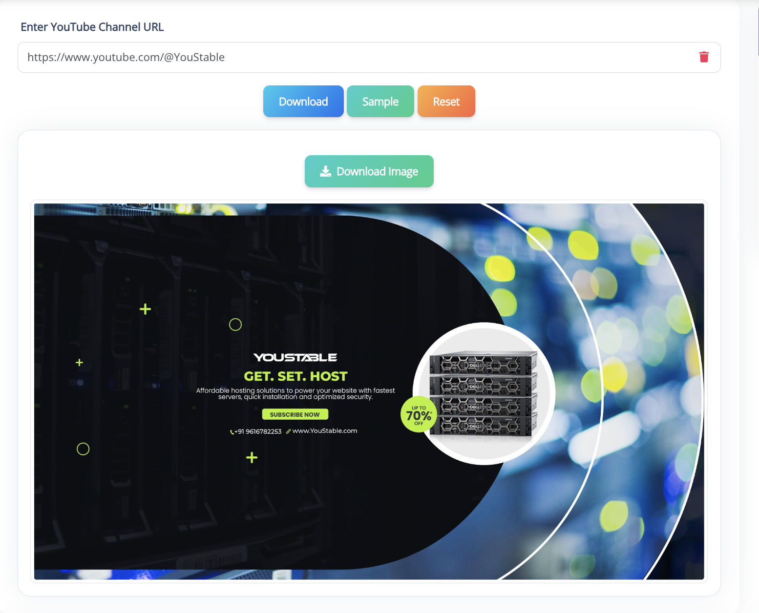 • Instant Downloads: Paste a YouTube channel URL, and the tool fetches the banner in seconds.