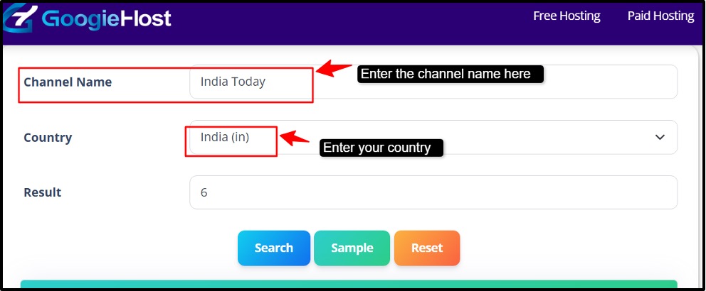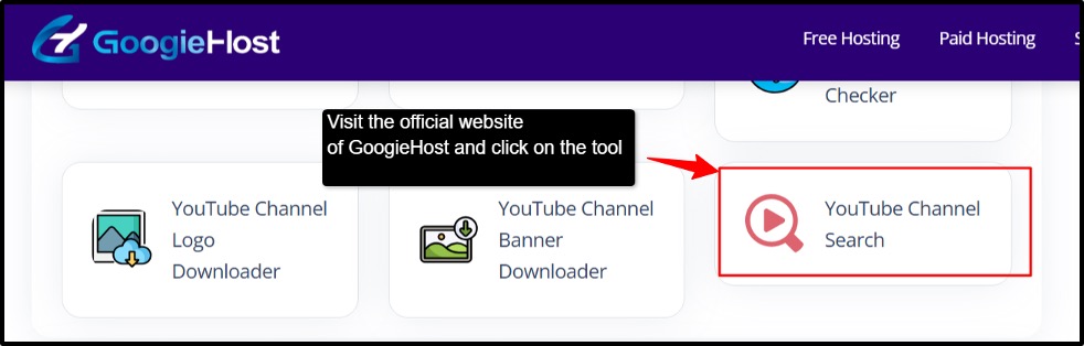 Step 1: Visit the Tool << Go to GoogieHost's YouTube Channel Search page; it's one of their free YouTube-related tools.