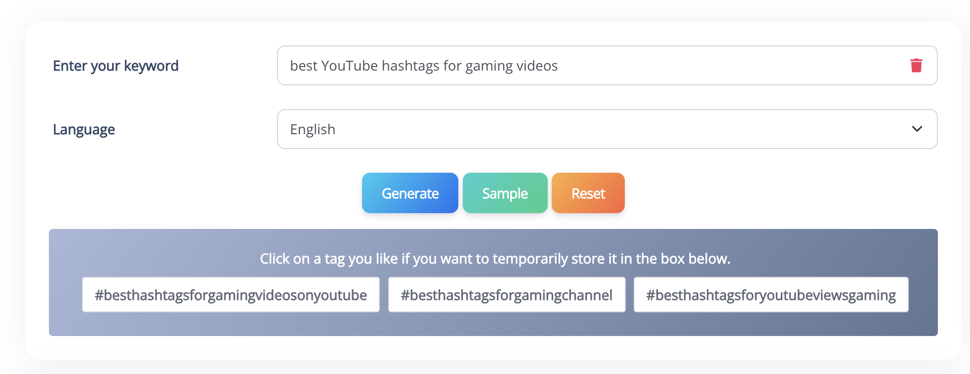 - Input Your Keyword: Type in your video's main topic, like "best YouTube hashtags for gaming videos.