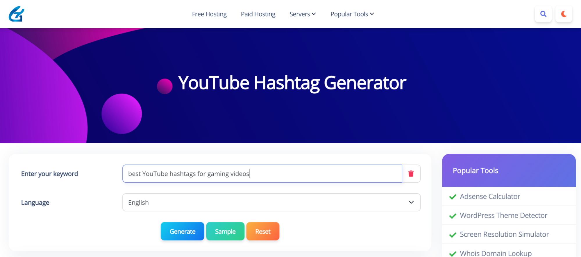 - Visit the Tool: Head to googiehost.com/tools and search for "YouTube Hashtag Generator."