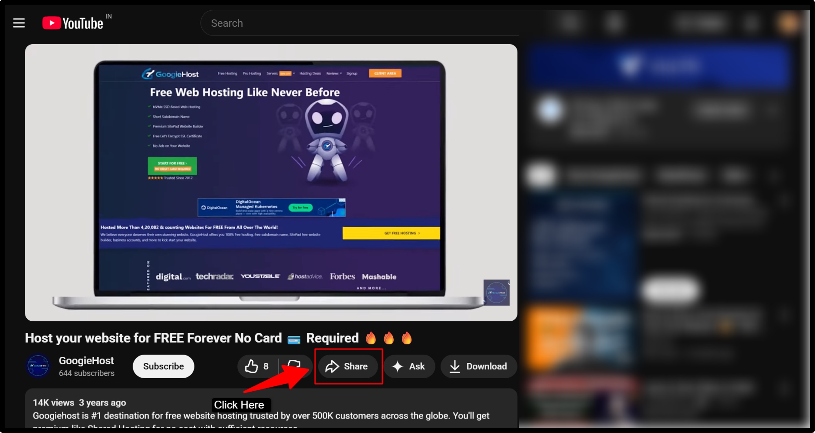 - Next, grab the link to the YouTube video you want to check out (It could be a competitor’s viral video, a trending Short, or any video you’re curious about) >> Go to your YT video >> Click the Share button >> Copy the Video Link provided at the bottom.