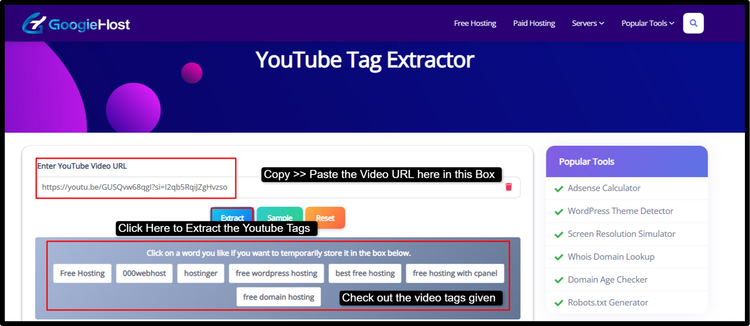YouTube Tag Extractor is a YouTube tool that lets you extract (pull) tags from any YouTube video. It is owned by GoogieHost.